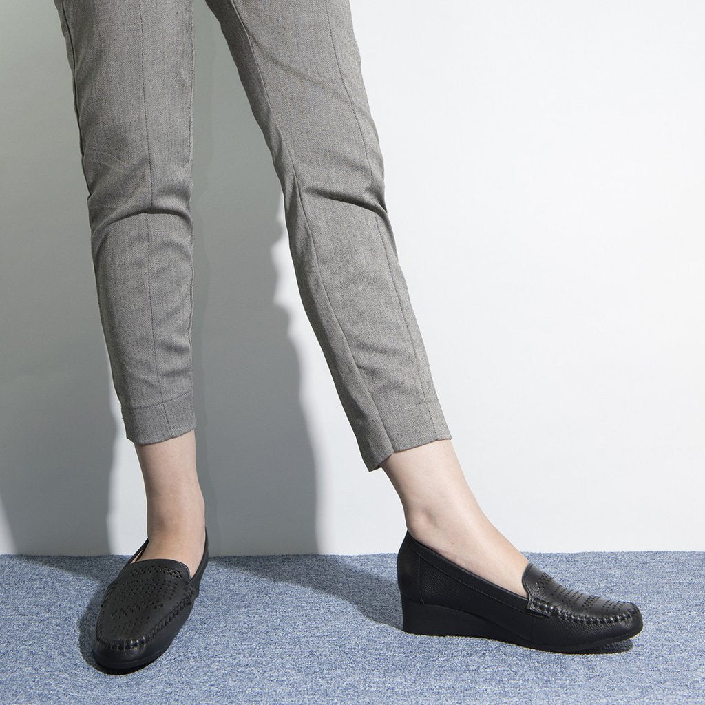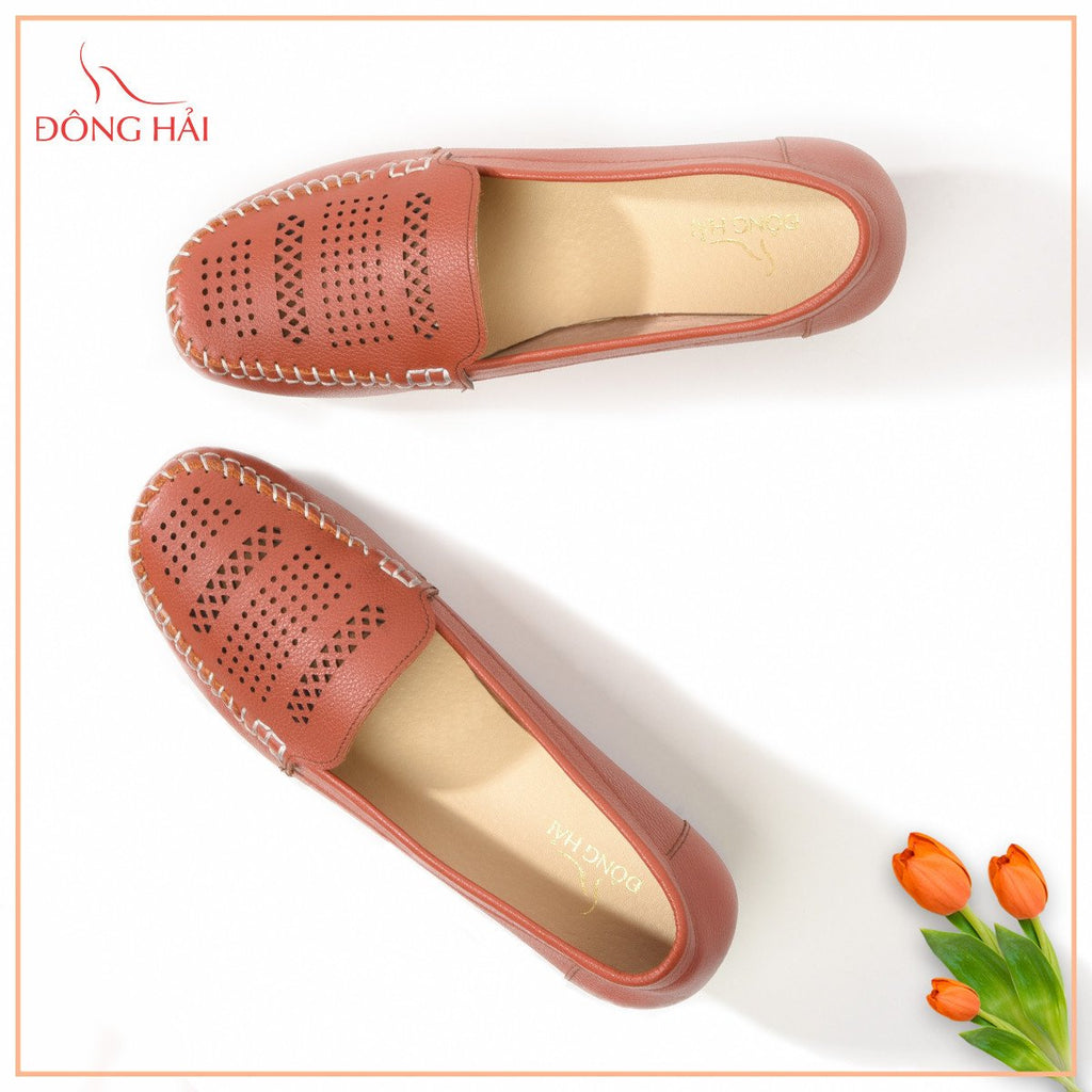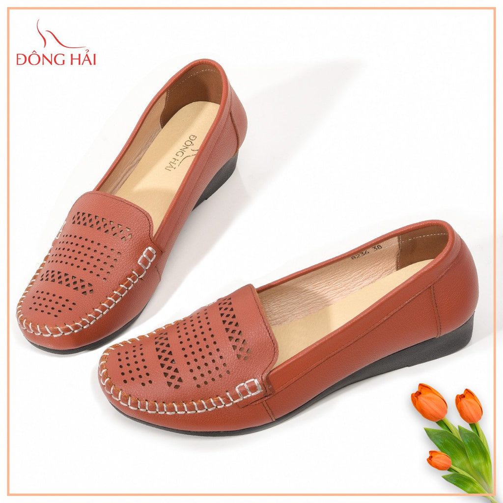 Giày lười Đông Hải - G8236 với chất liệu da bò mềm mại và đường chỉ may nhún xung quanh mặt sân. Thiết kế mặt sân rộng, tạo cảm giác thoáng mát khi đi. Đế xuồng cải thiện chiều cao vững chắc. Gợi ý bạn có thể kết hợp với quần jeans ống loe cùng áo sơmi lụa cho một phong cách thanh lịch tuyệt đối.